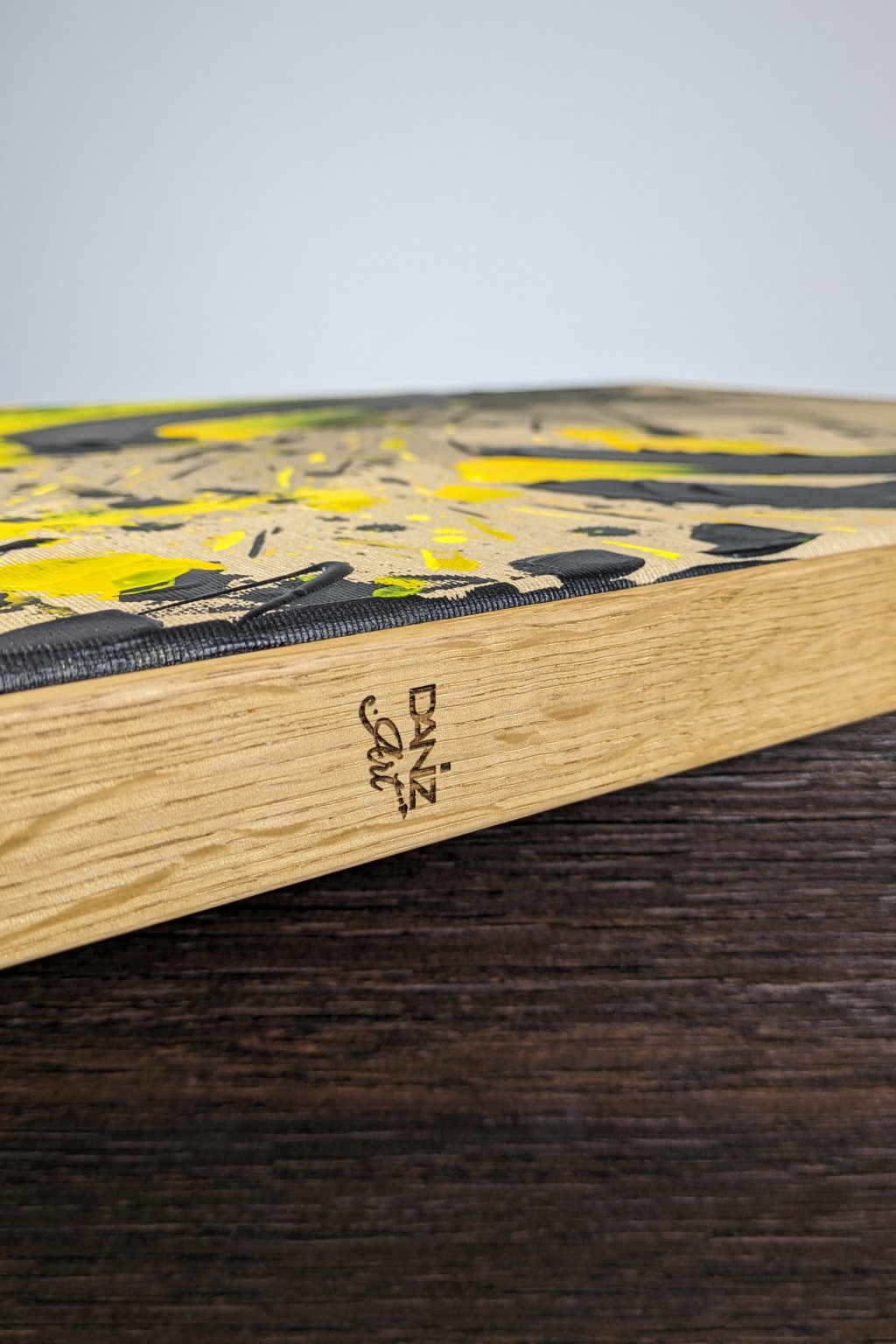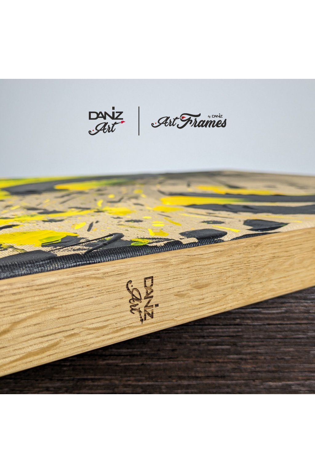 Rám: Drevený dubový rám s gravírovaným logom